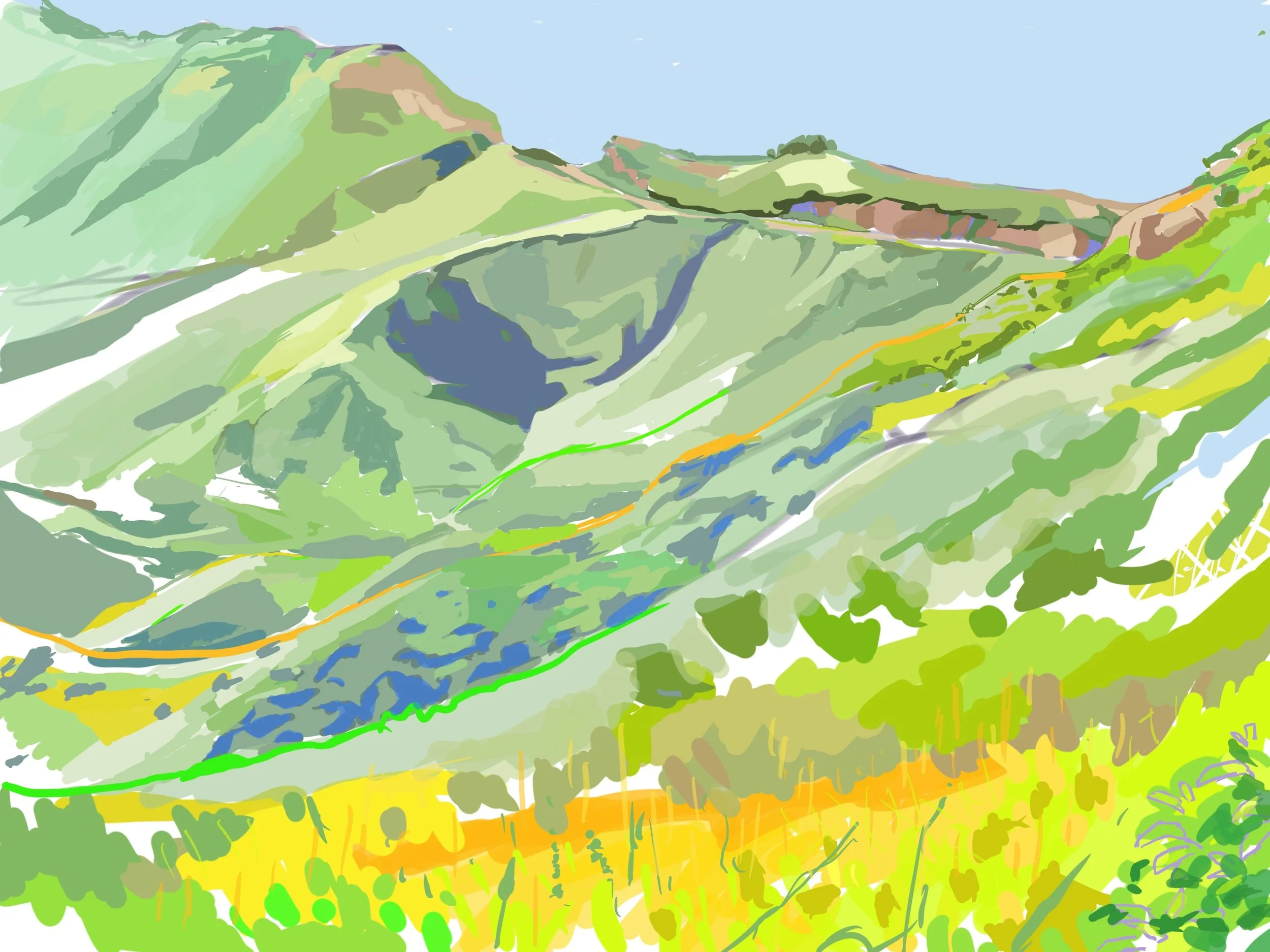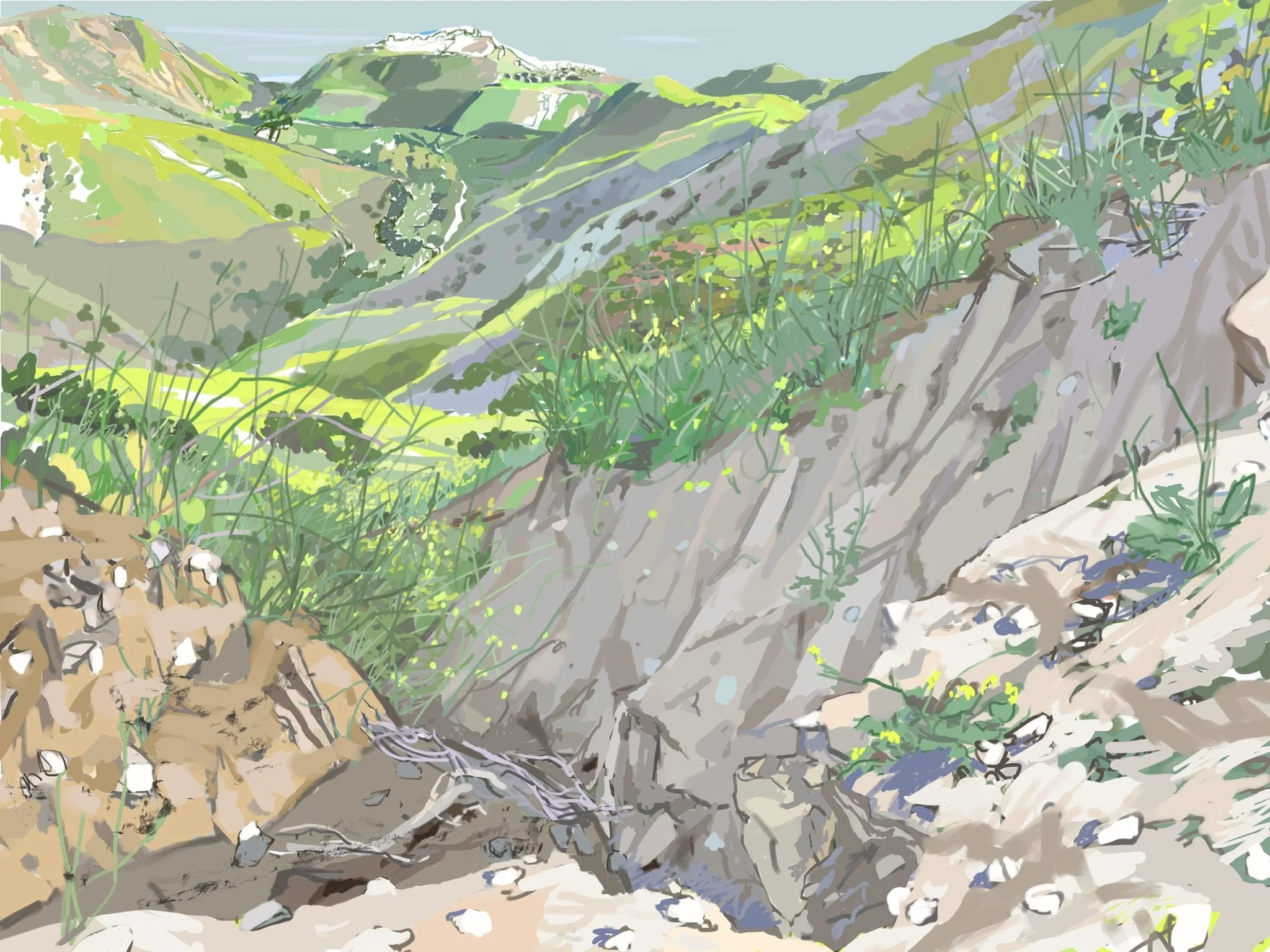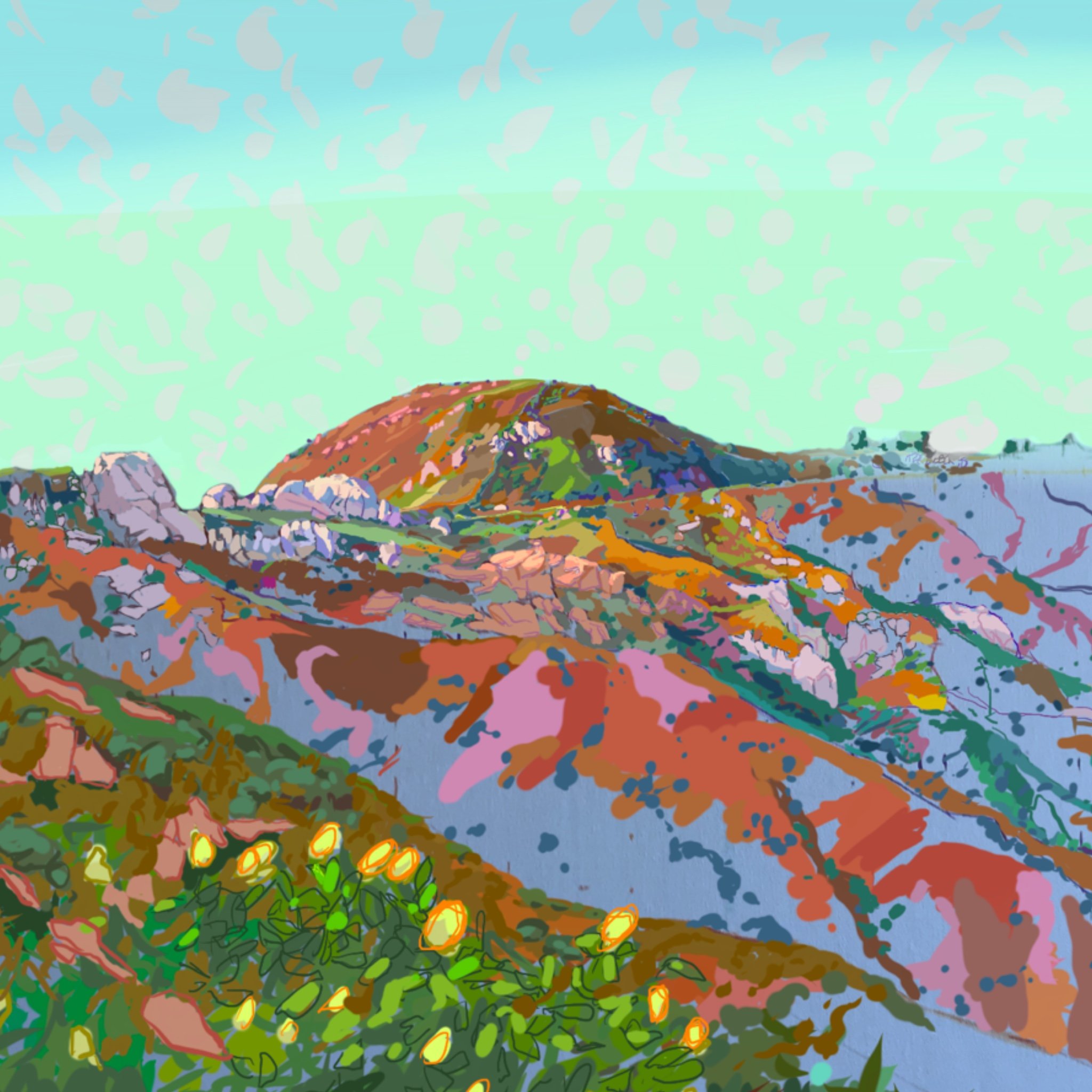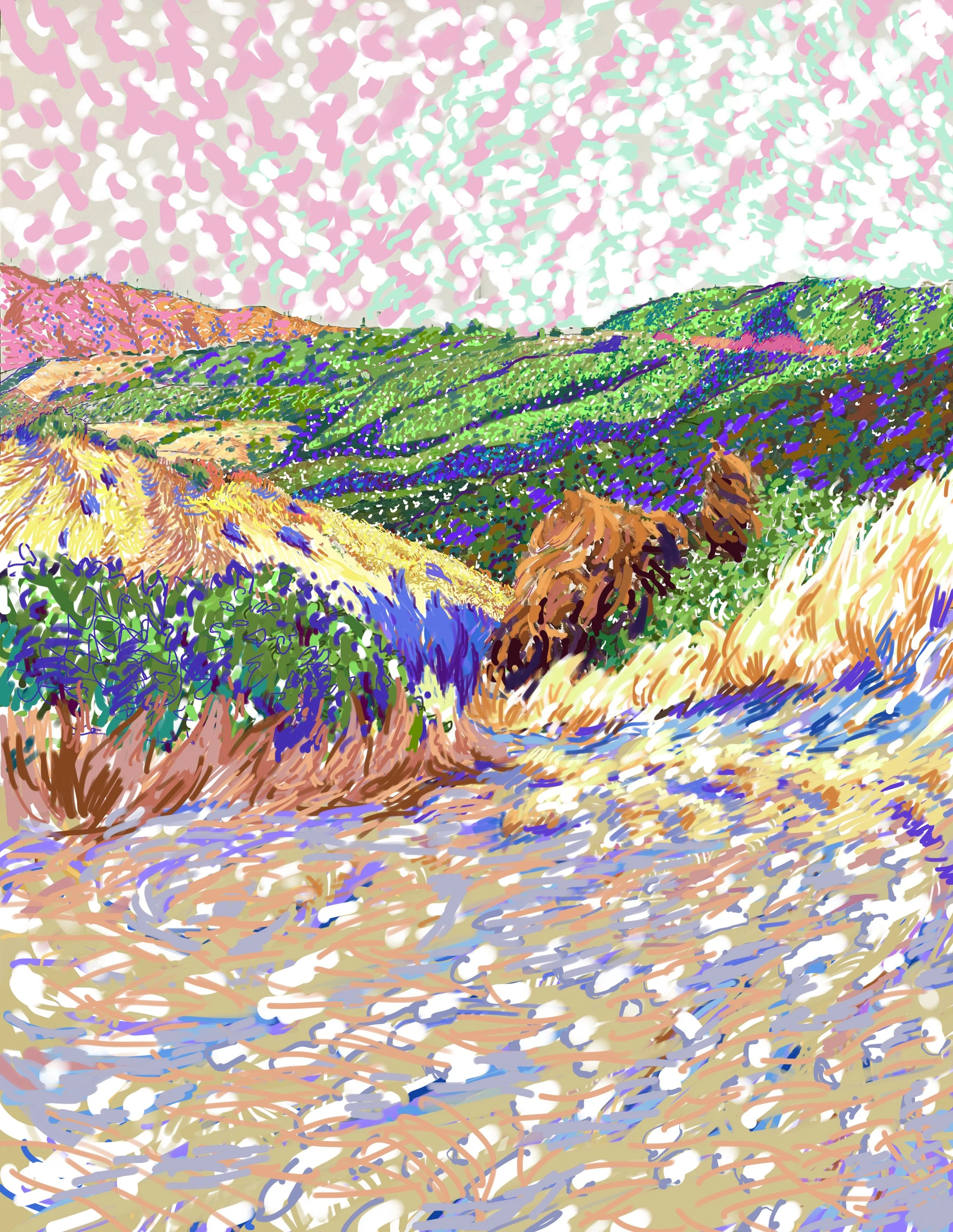 “Poets Hill” 2021 iPad painting “Corral Canyon Furrows” 2023 iPad painting “Spring” 2020 iPad painting printed on paper