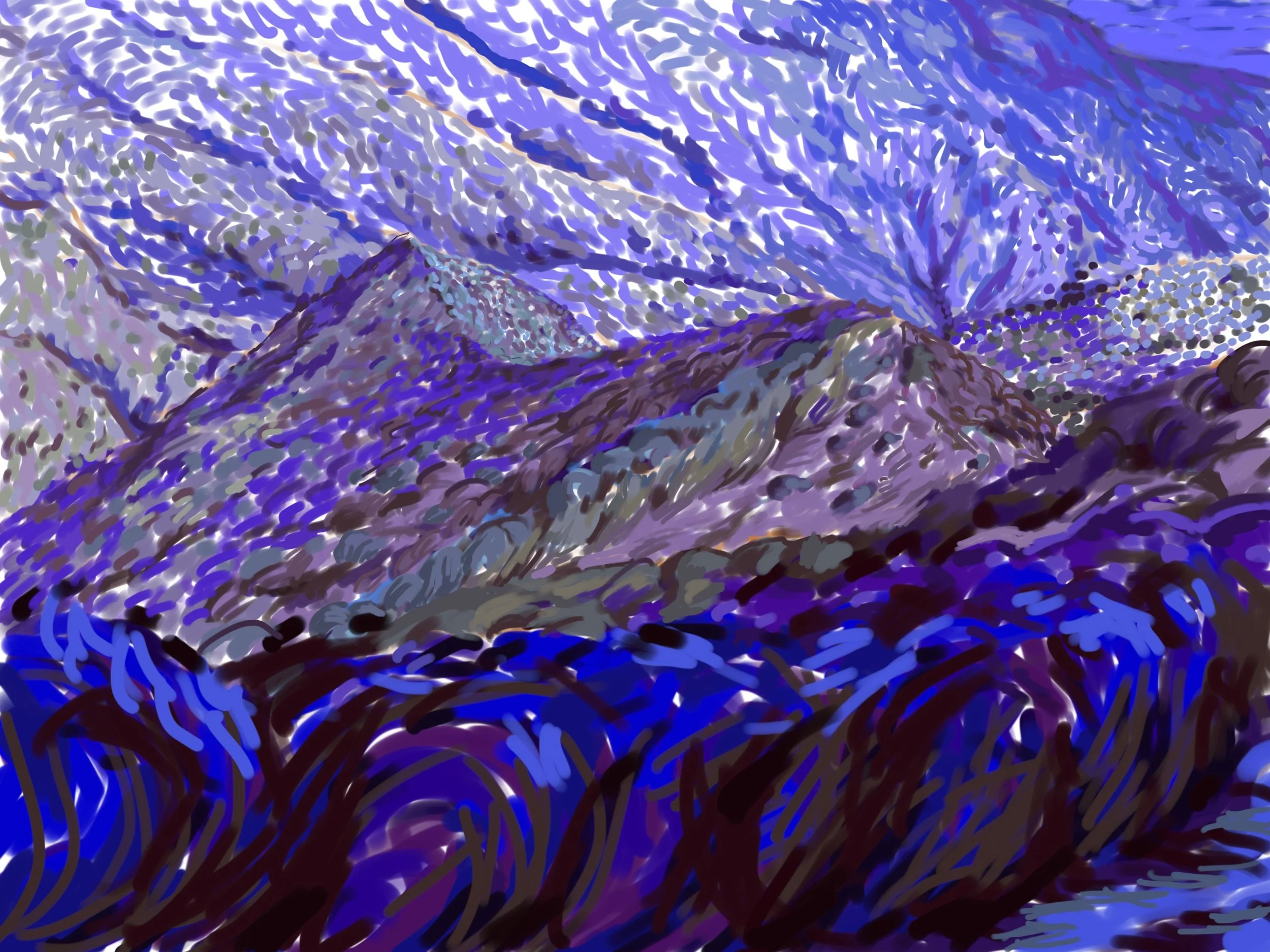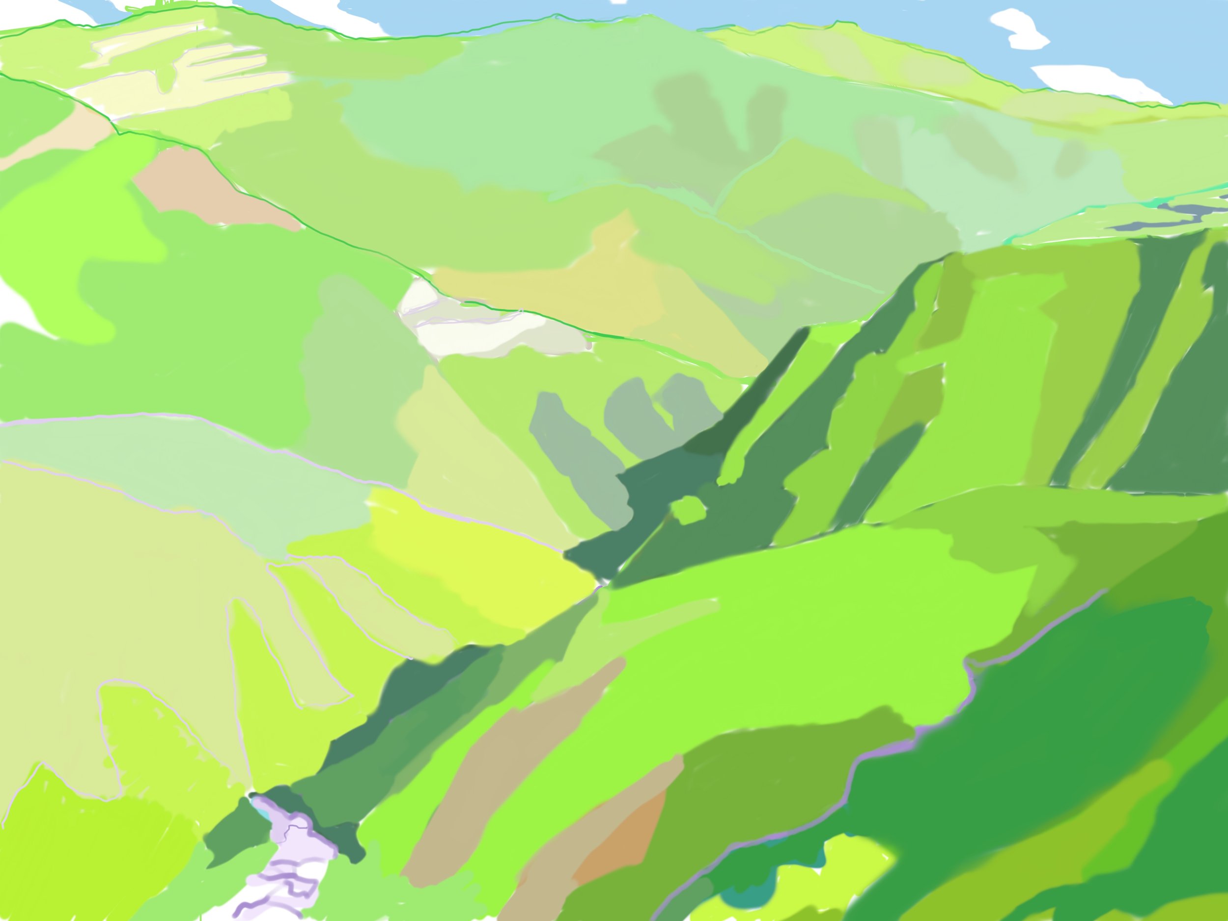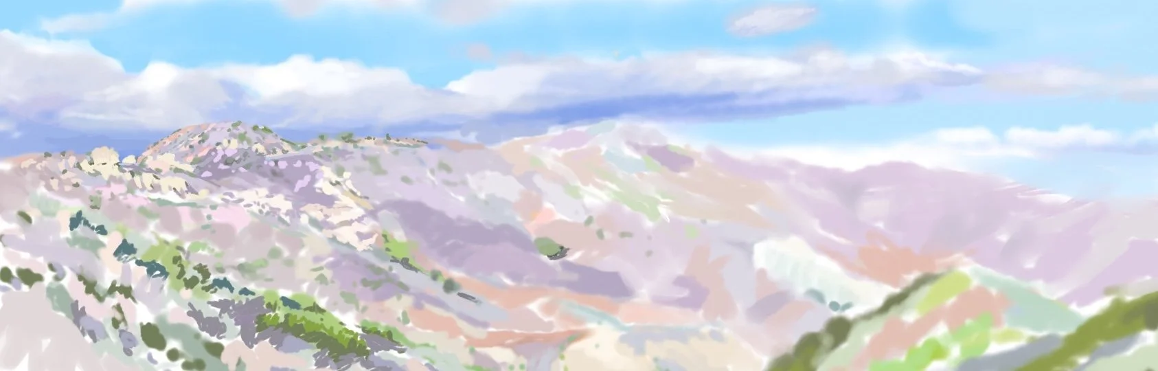 “Poets Hill” 2021 iPad painting “Corral Canyon Furrows” 2023 iPad painting “Spring” 2020 iPad painting printed on paper