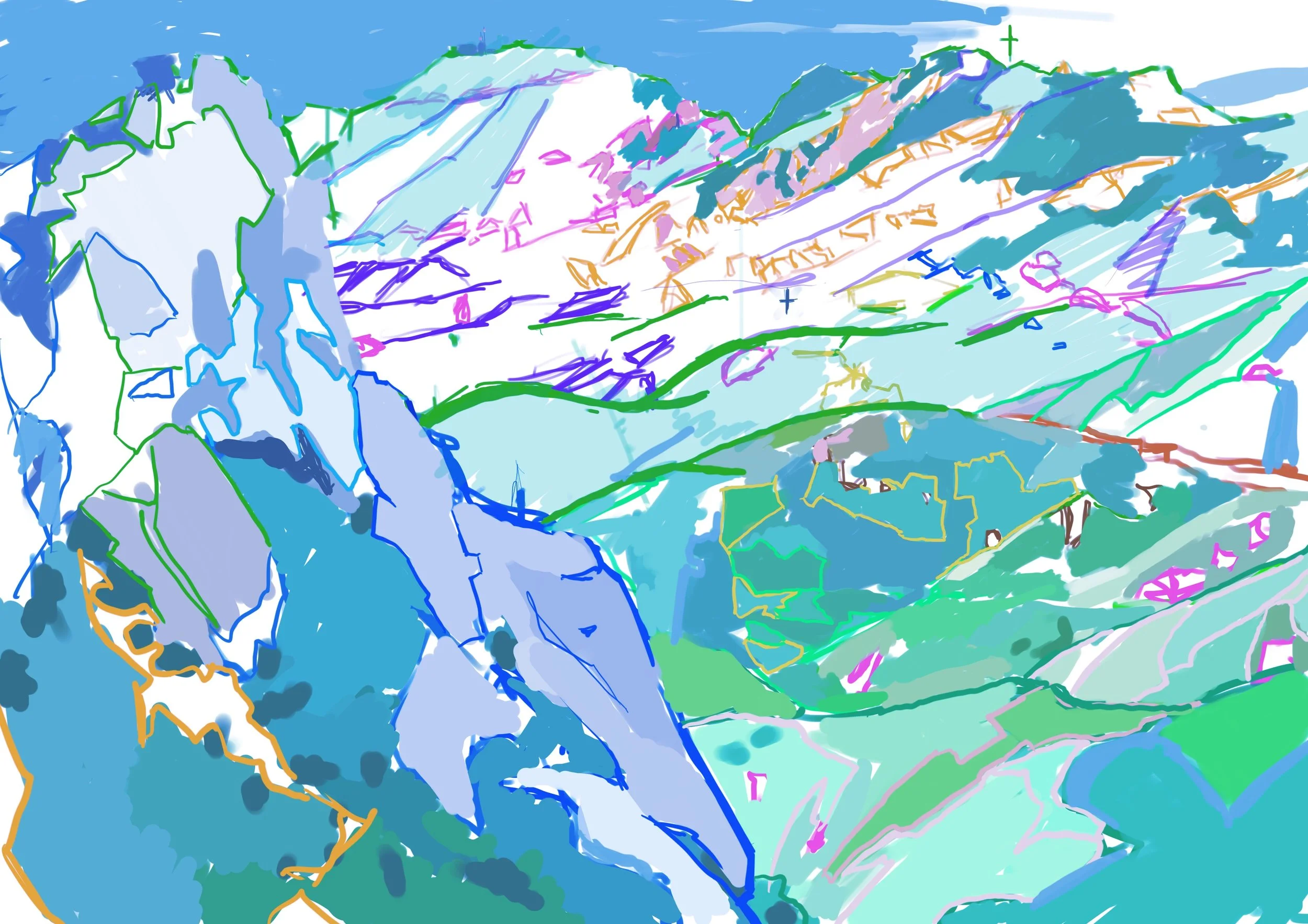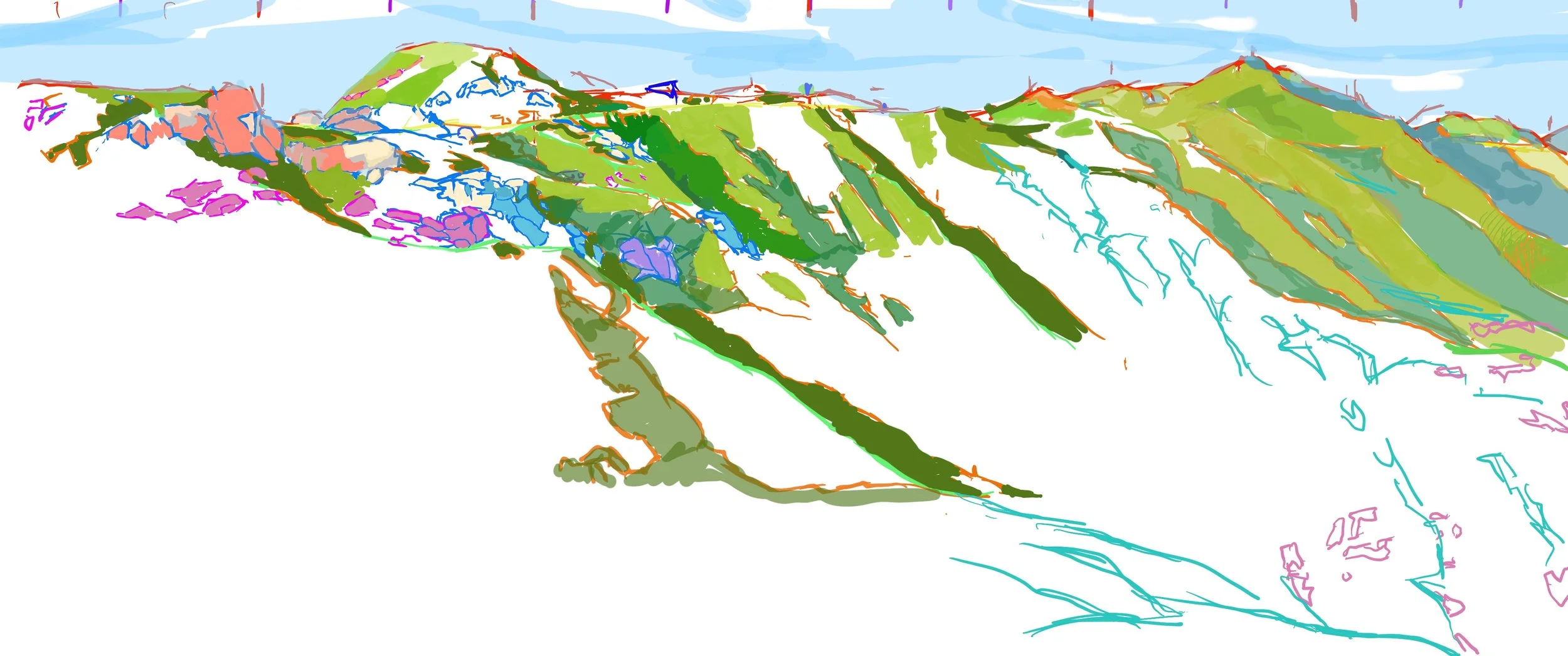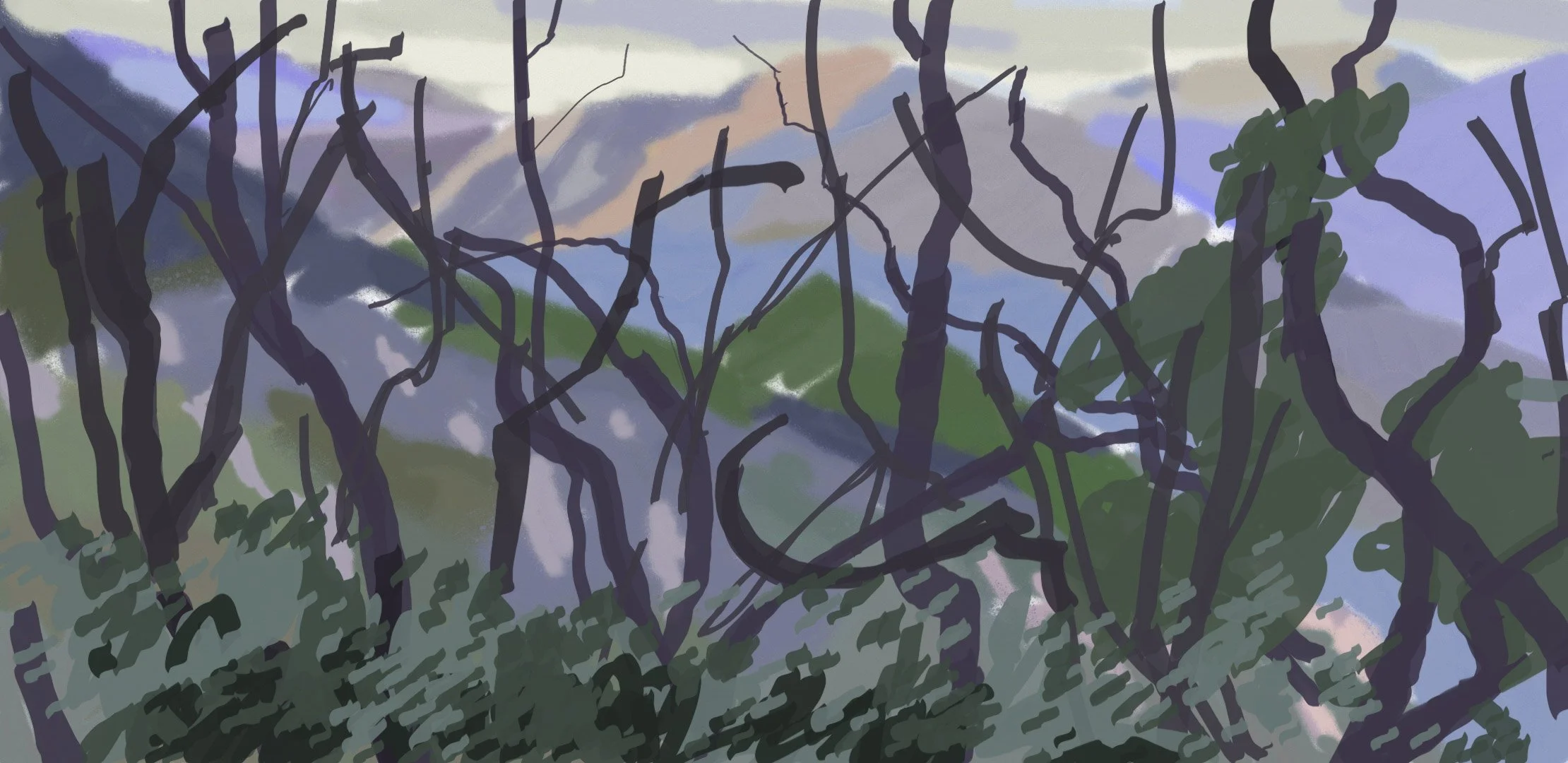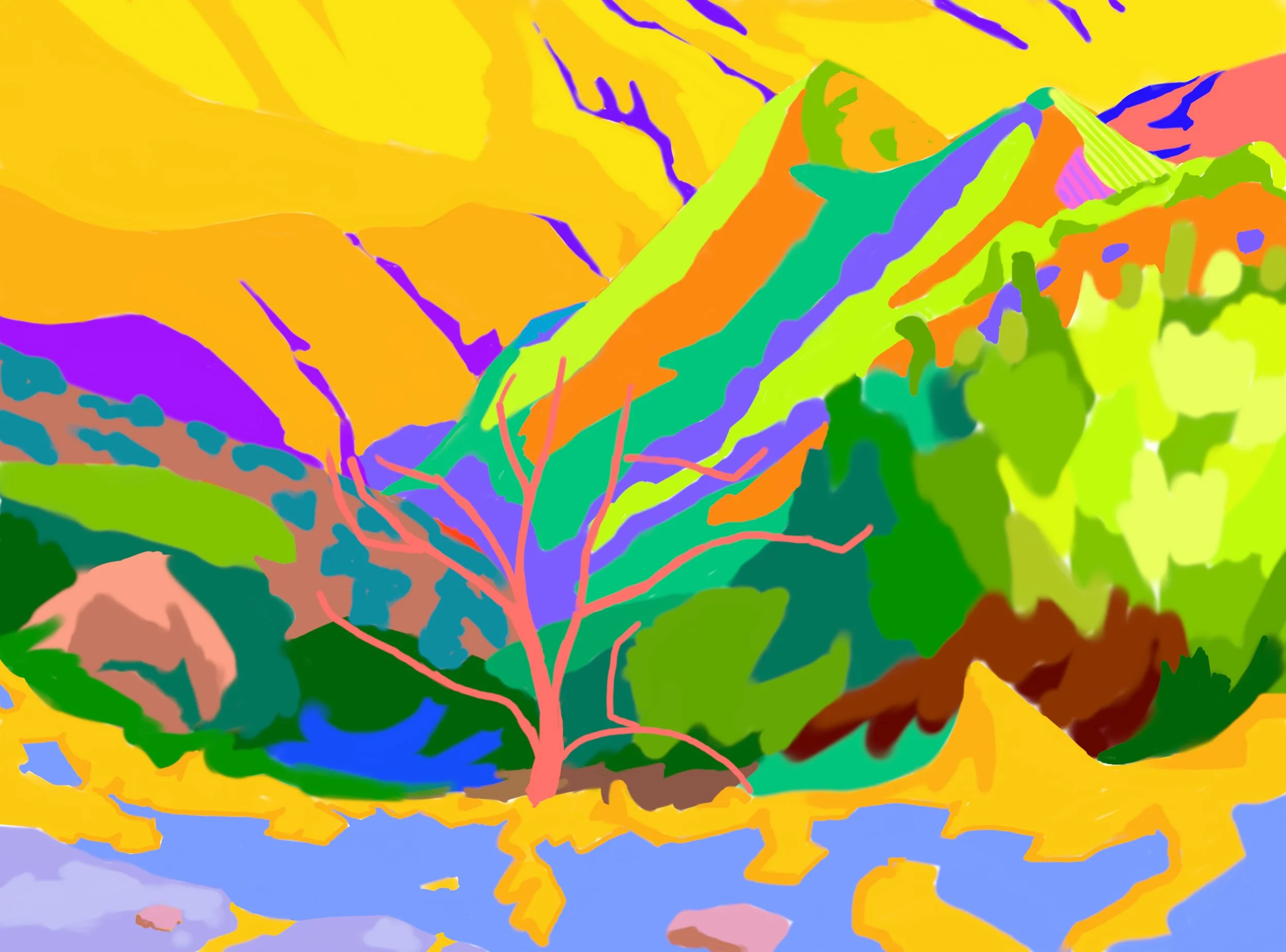 “Poets Hill” 2021 iPad painting “Corral Canyon Furrows” 2023 iPad painting “Spring” 2020 iPad painting printed on paper